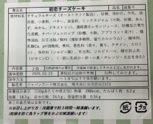 初恋チーズケーキ 成分表