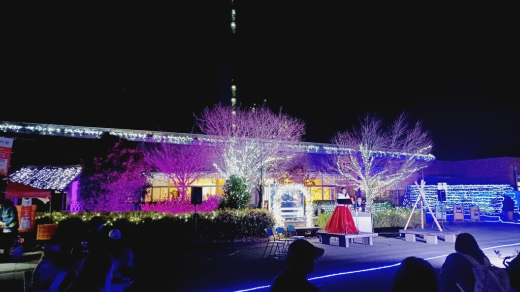 古代蓮の里が約15万球の光で灯されます。プロジェクションマッピングや蓮のオブジェ、青く光るトンネルなどを地上からも高さ50mの展望タワーからも楽しむことができます。インスタ映えスポットも満載です。