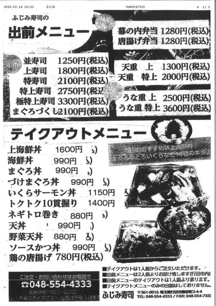 デリバリーでは、厳選ネタのお寿司を握り、市内全域のご自宅、会社まで配達します。うな重も大変ご好評です。どうぞご利用ください。