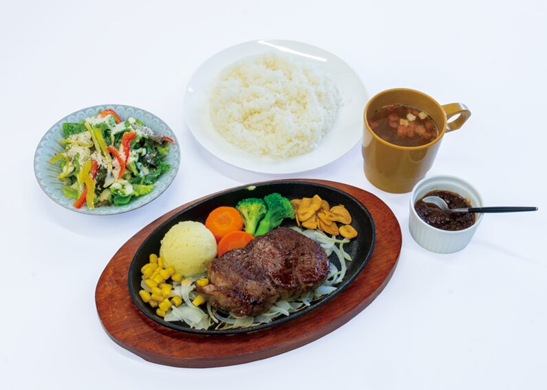 レストランエリア では、目の前で焼き上げる鉄板ステーキをはじめ、上州牛などの質の高い肉料理を五感で味わえます。